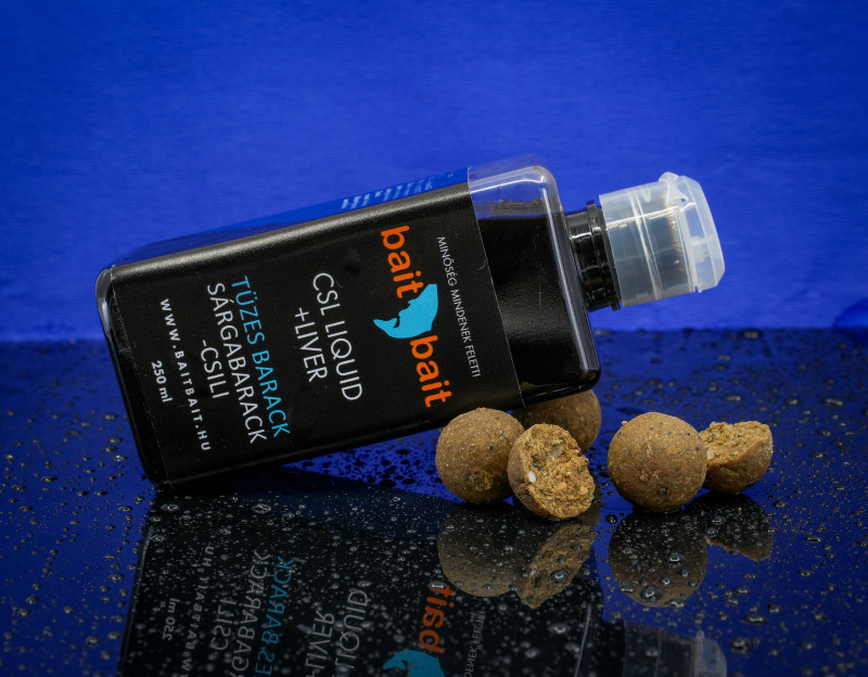 A Bait Bait által készített CSL + Liver Liquid magas alkoholtartalmú és egyben magas fehérjetartalmú étvágyfokozó folyadék. Leginkább a vízfenéken horizontálisan fejti ki csalogató hatását.